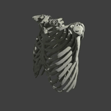 This is a visualization I made of a chest cavity using computed tomography (CT) scan data, which I got from a radiology lab on a CD-ROM (as if it were 2002). The data were in a weird and pretty archaic data format called DICOM that is apparently a standard for medical imaging. I used a Python package called pydicom to read it into a 3D numpy array representing the density (or opacity to X-rays or something like that). The array’s shape was 512x512x465 and the values were integers from 0 to 4095. The scan resolution was about 30.2 dpi (which for a 2D document would be extremely poor). Strangely along the z- (spinal-) axis the resolution is slightly different, 33.9 dpi. I used MayaVi to plot an isosurface to my liking. I had to play a lot with the contour value: if too low, too many soft tissues show up, if too high, the costal cartilages doesn’t show (that’s some piece of cartilage that connects each rib to the sternum). Unfortunately even with this careful choice, the 3D model had quite a lot of soft tissues which would have been very difficult to exclude in the Python script. So I exported the model and used Blender to manually remove the soft tissues. This was quite a hassle, but when it’s done it’s relatively easy to set up this rotation animation in Blender and render in high quality.