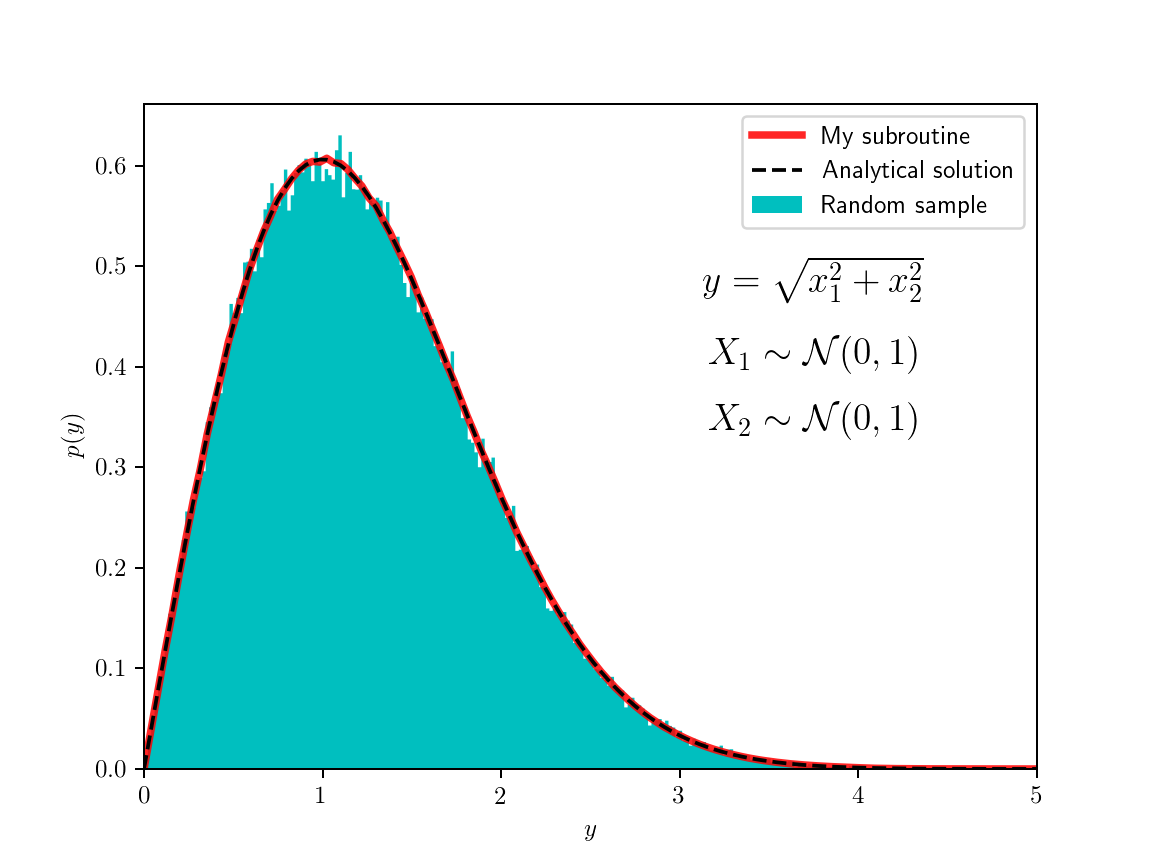 I frequently encounter the problem of having to find the probability density function (pdf) of some quantity which is a function of several independent random variables with known distributions. For some cases such as addition of two variables, there exists a relatively simple formula (the new pdf is just the convolution of the two) but there is no general magic formula.