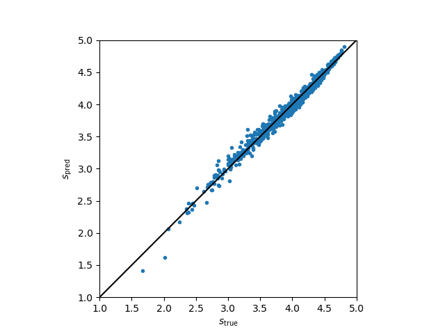 \[\begin{align*} s_\mathrm{pred} = 3.45 + 1.66 \bar{n}_5 - 3.03 \bar{n}_1 \end{align*}\]is within ~0.06 stars from the average rating 68% of the time, and within ~0.1 stars from the average rating 90% of the time. Here, $\bar{n}_1$ and $\bar{n}_5$ are the normalized 1- and 5-star results, respectively, meaning the number of reviews divided by the total number.